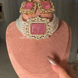 Tyaani Style Pink Doublet Stone Pearl Choker Set | Gold Plated Polki CZ Bridal Necklace with Earrings | Luxury Wedding Statement Jewelry